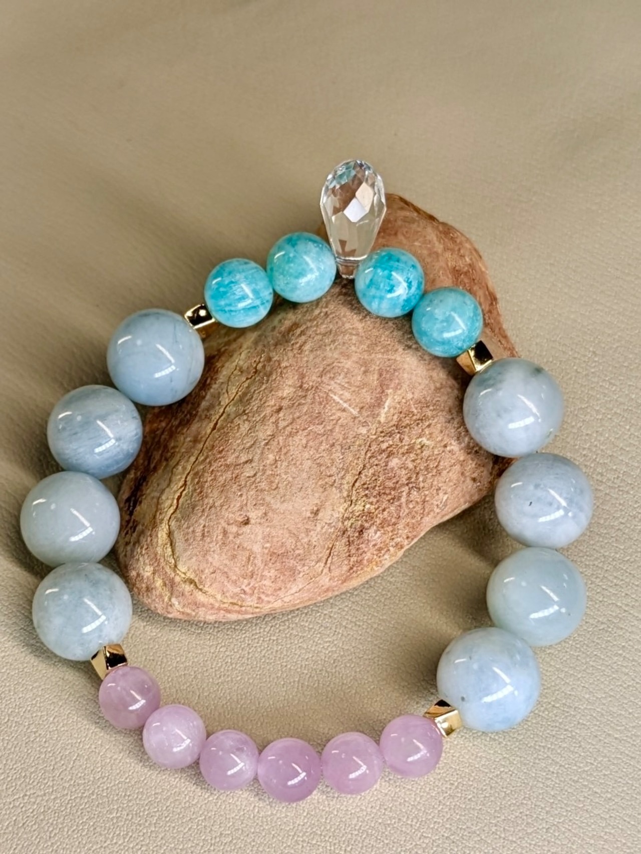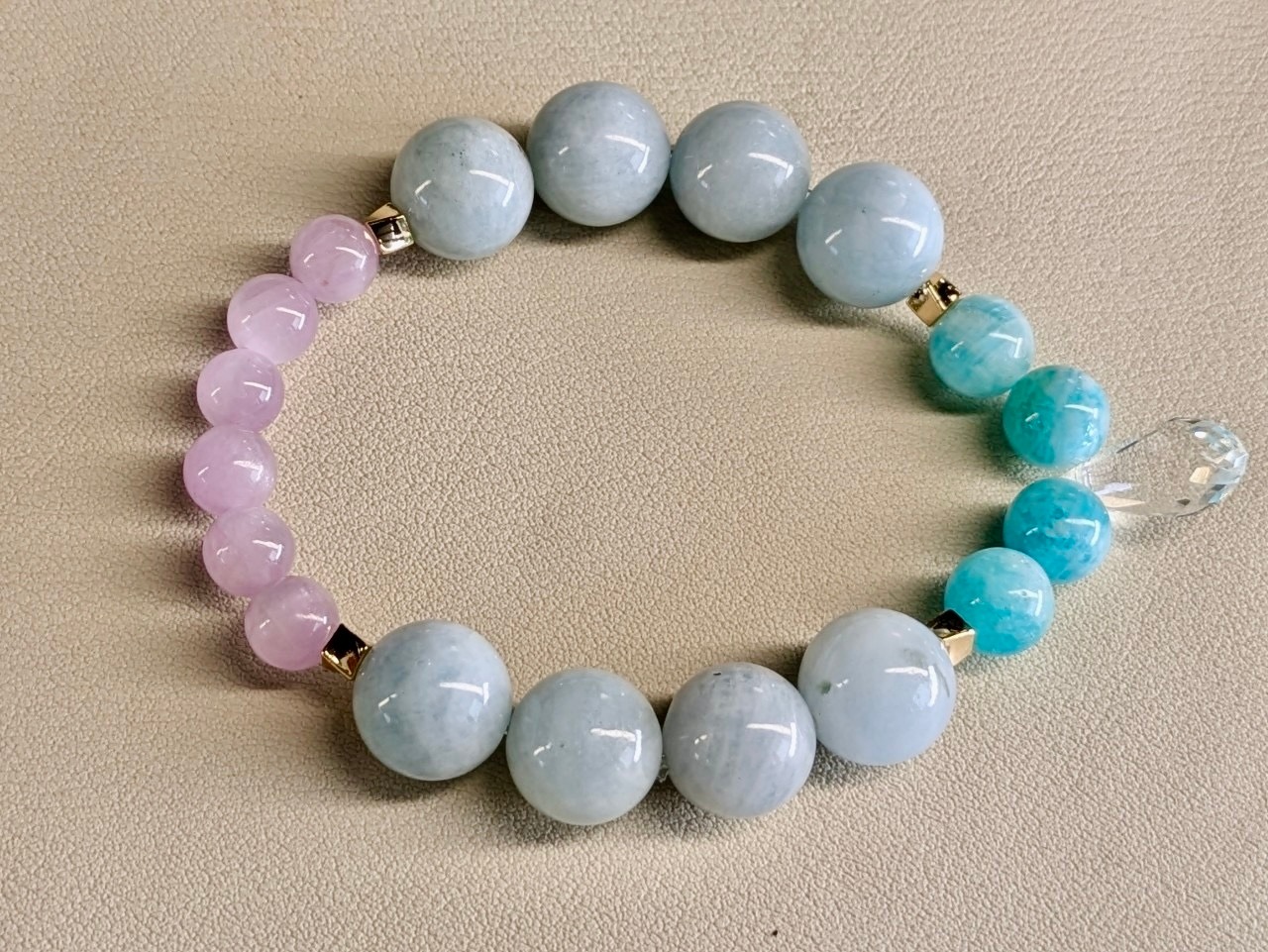 クゥンツァイト アクアマリン アマゾナイト 水晶 ブレスレット