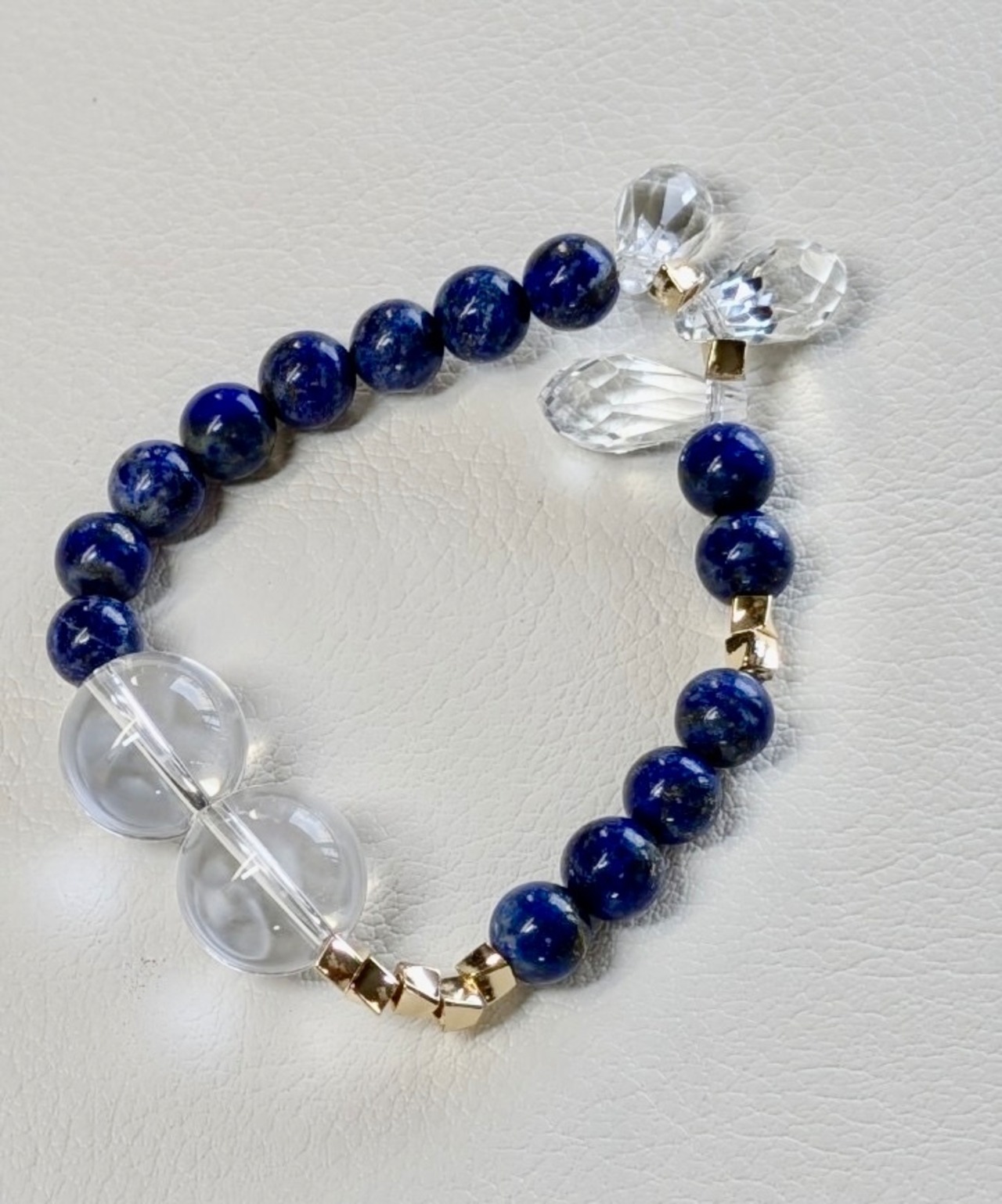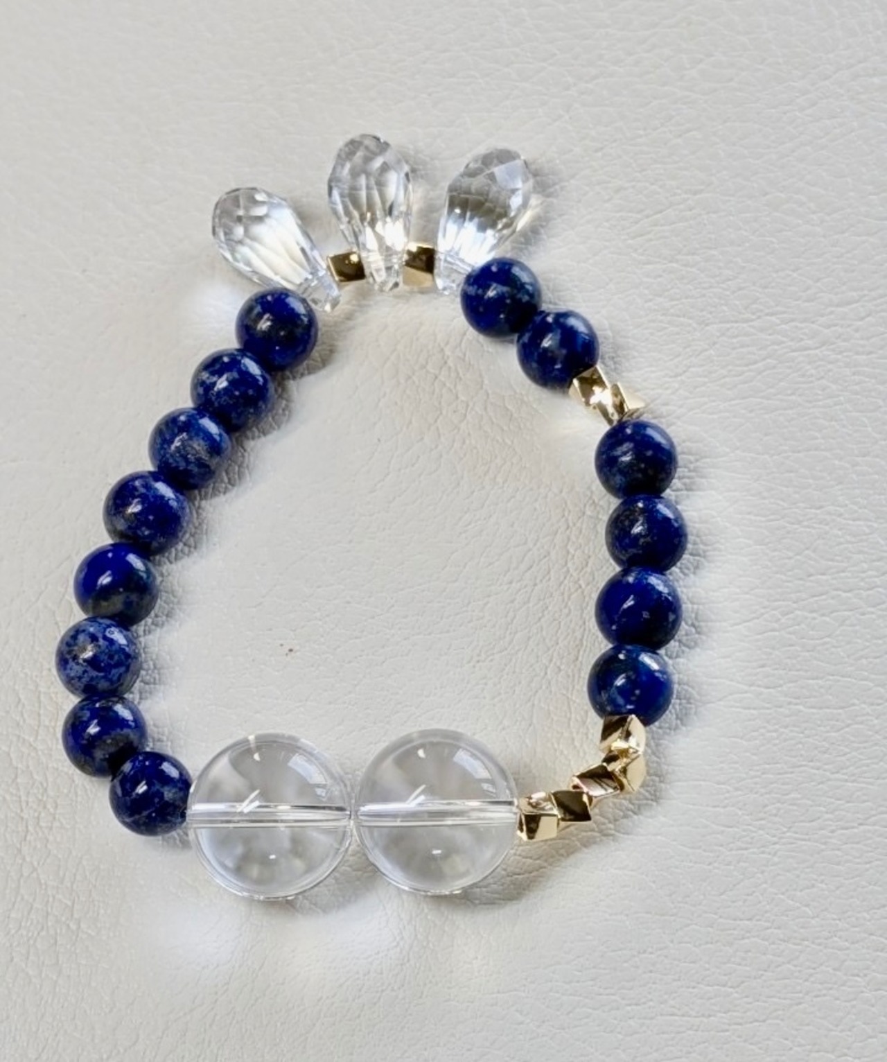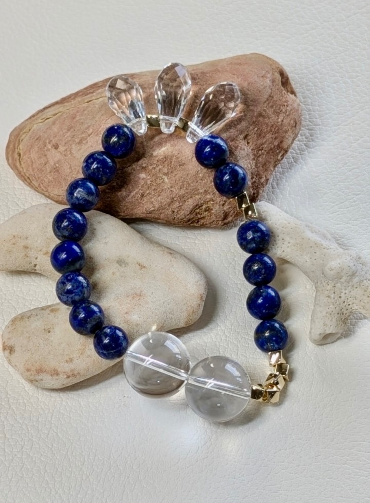 水晶とラピスラズリを組み合わせたブレスレットは、美しさとパワーを兼ね備えた特別なアクセサリーです。