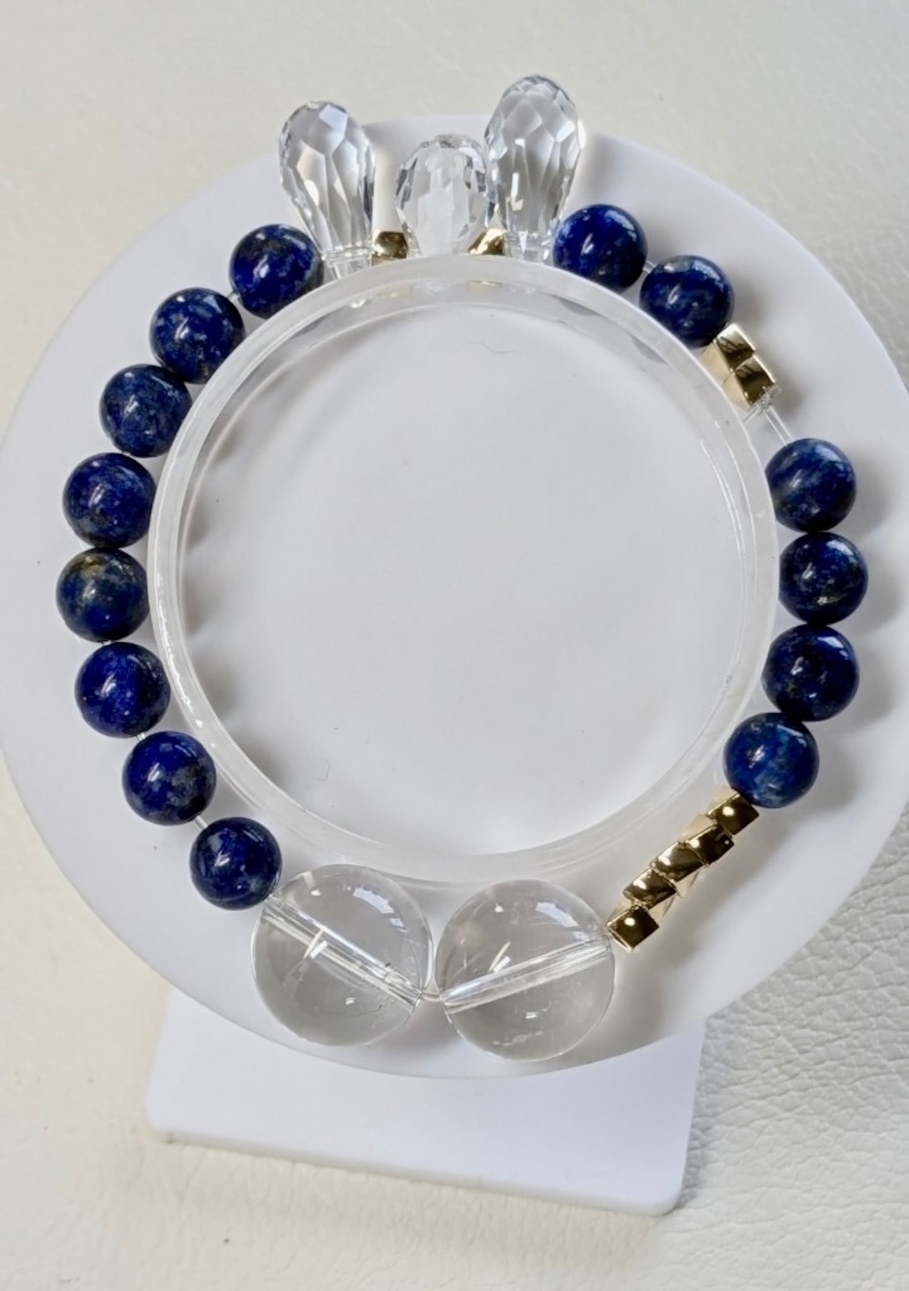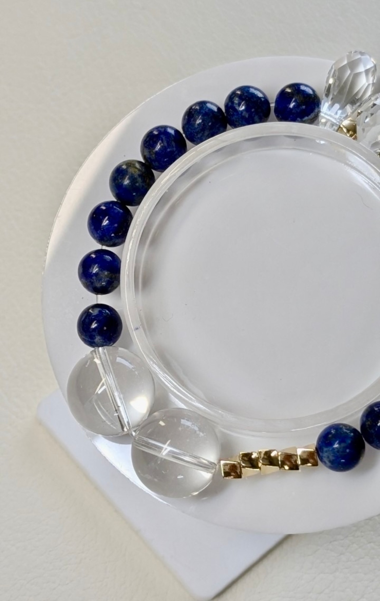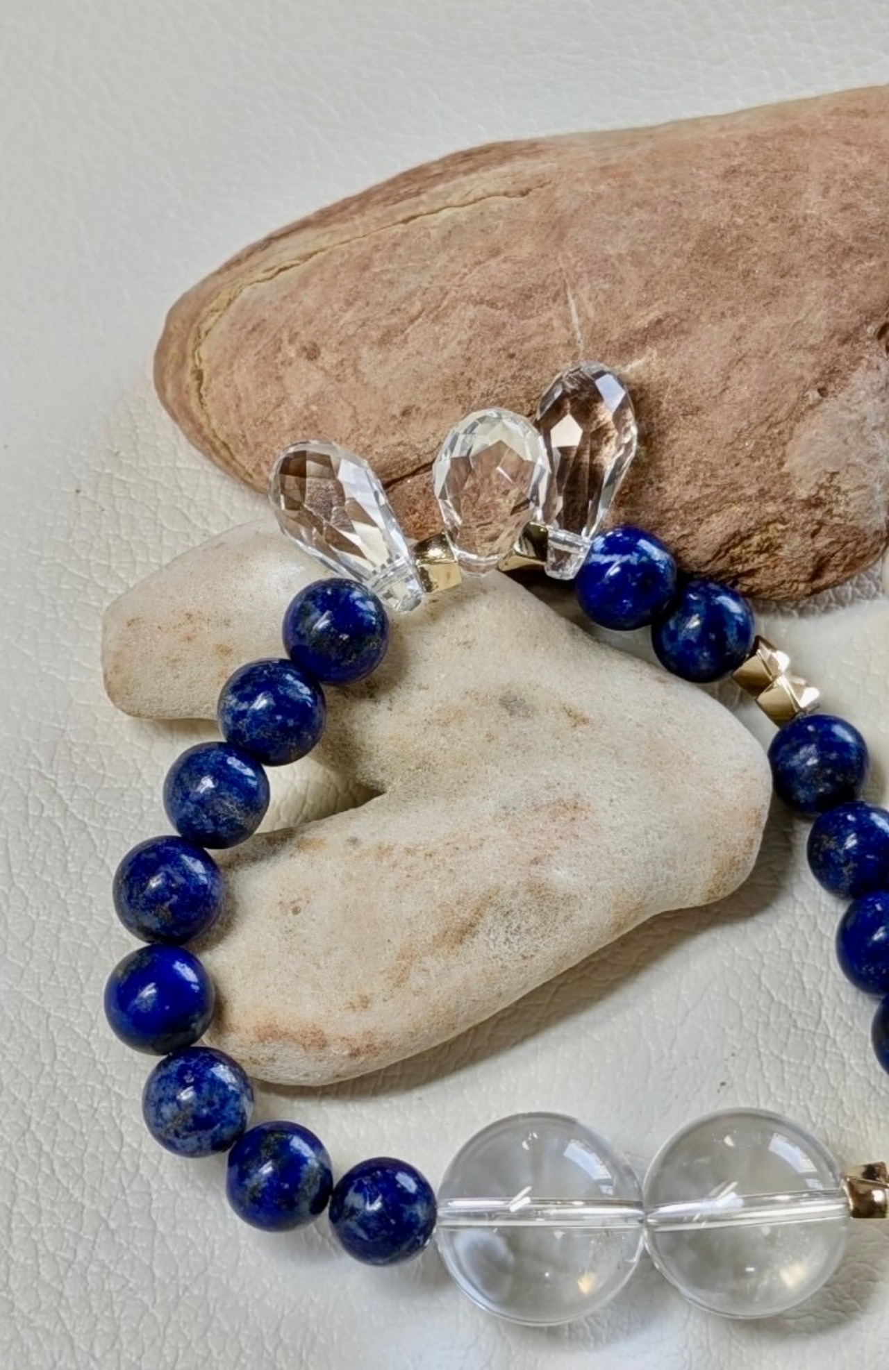 水晶とラピスラズリを組み合わせたブレスレットは、美しさとパワーを兼ね備えた特別なアクセサリーです。
