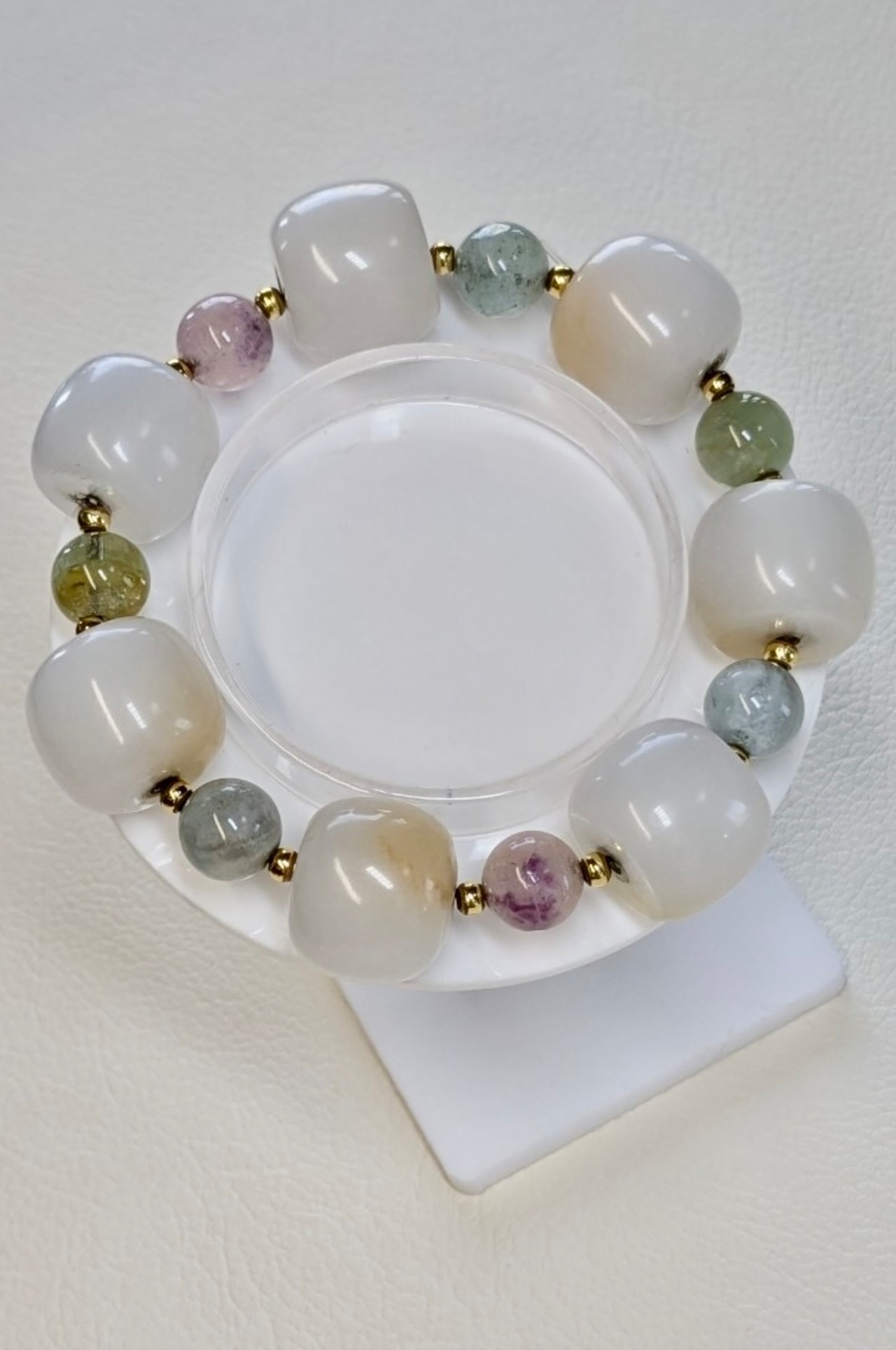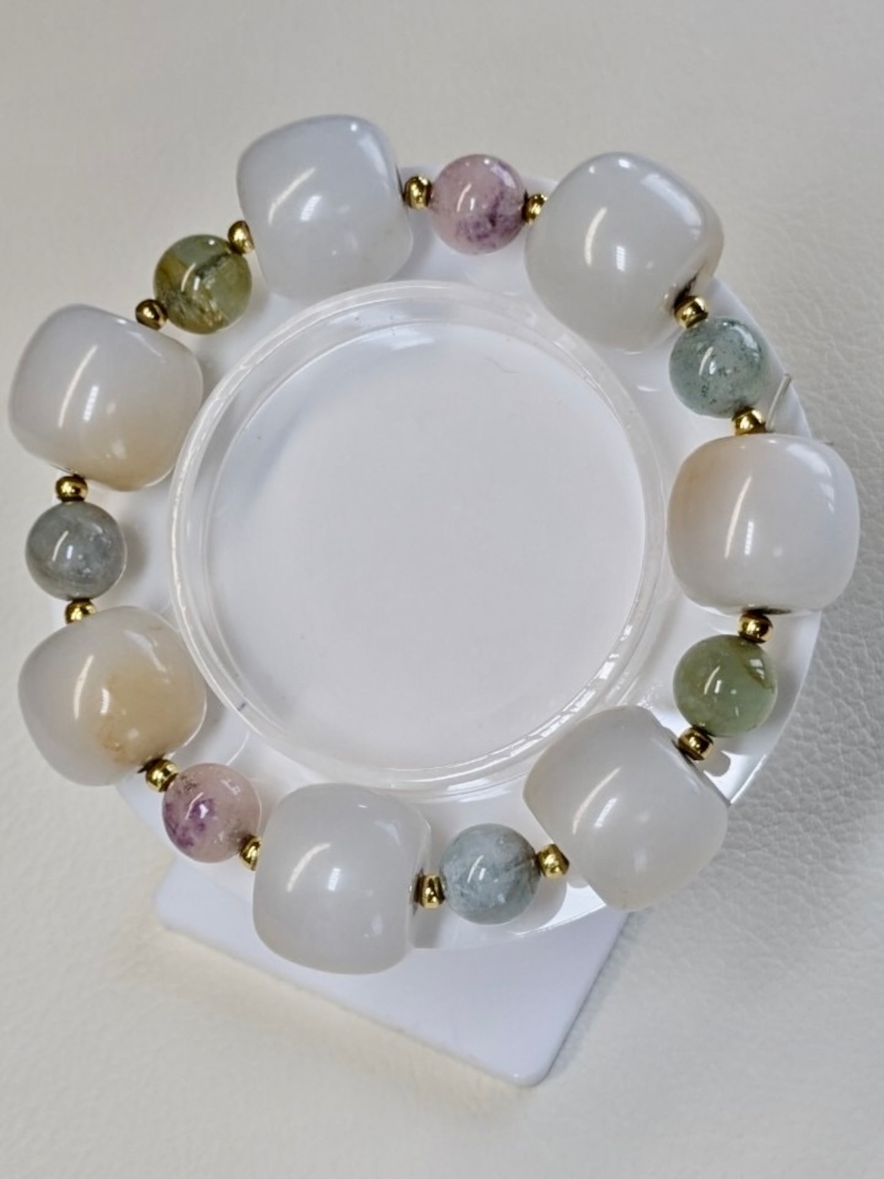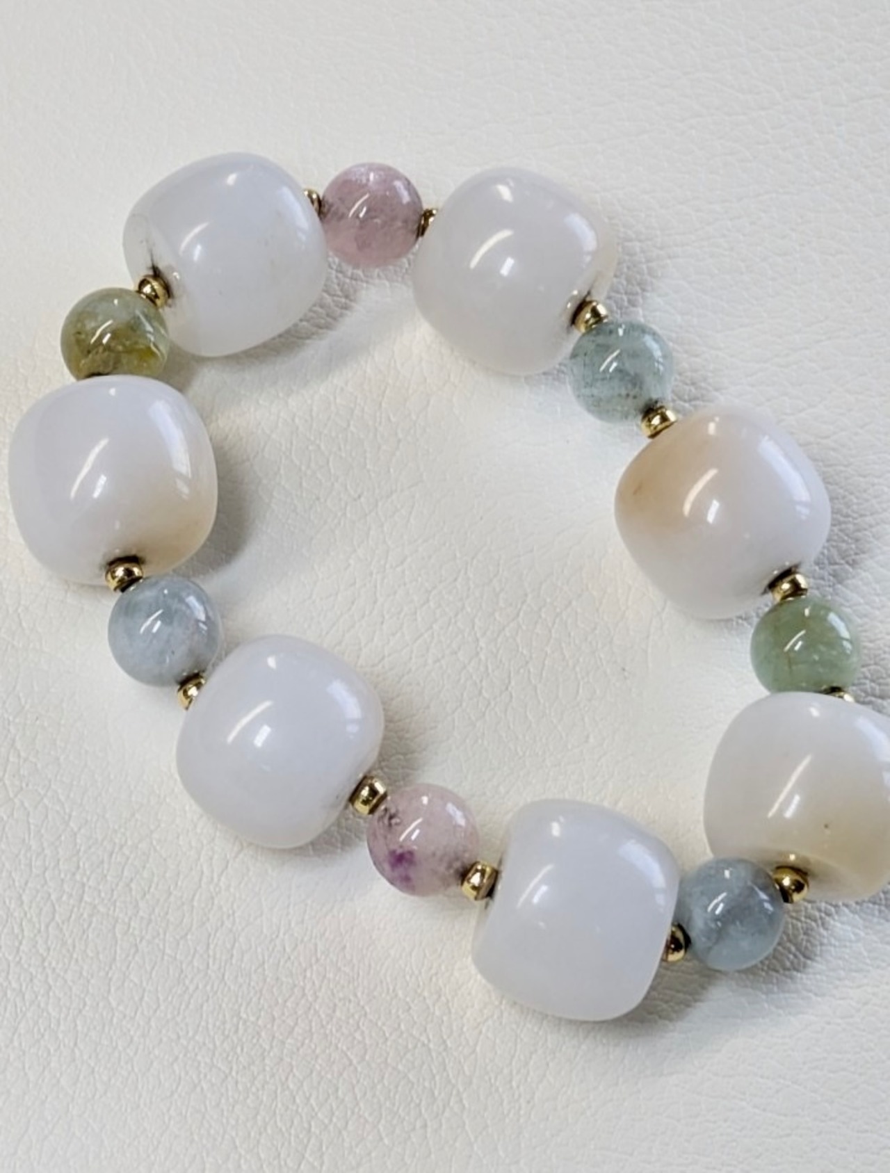 是非、このモルガナイト和田玉ブレスレットで日常に華やかさと幸福感をプラスしてください。